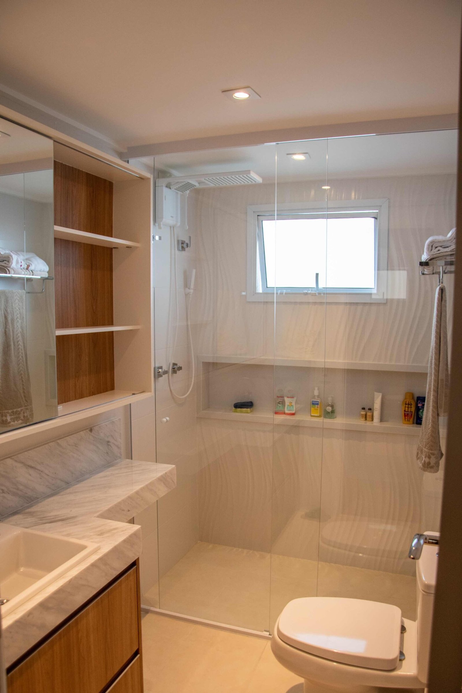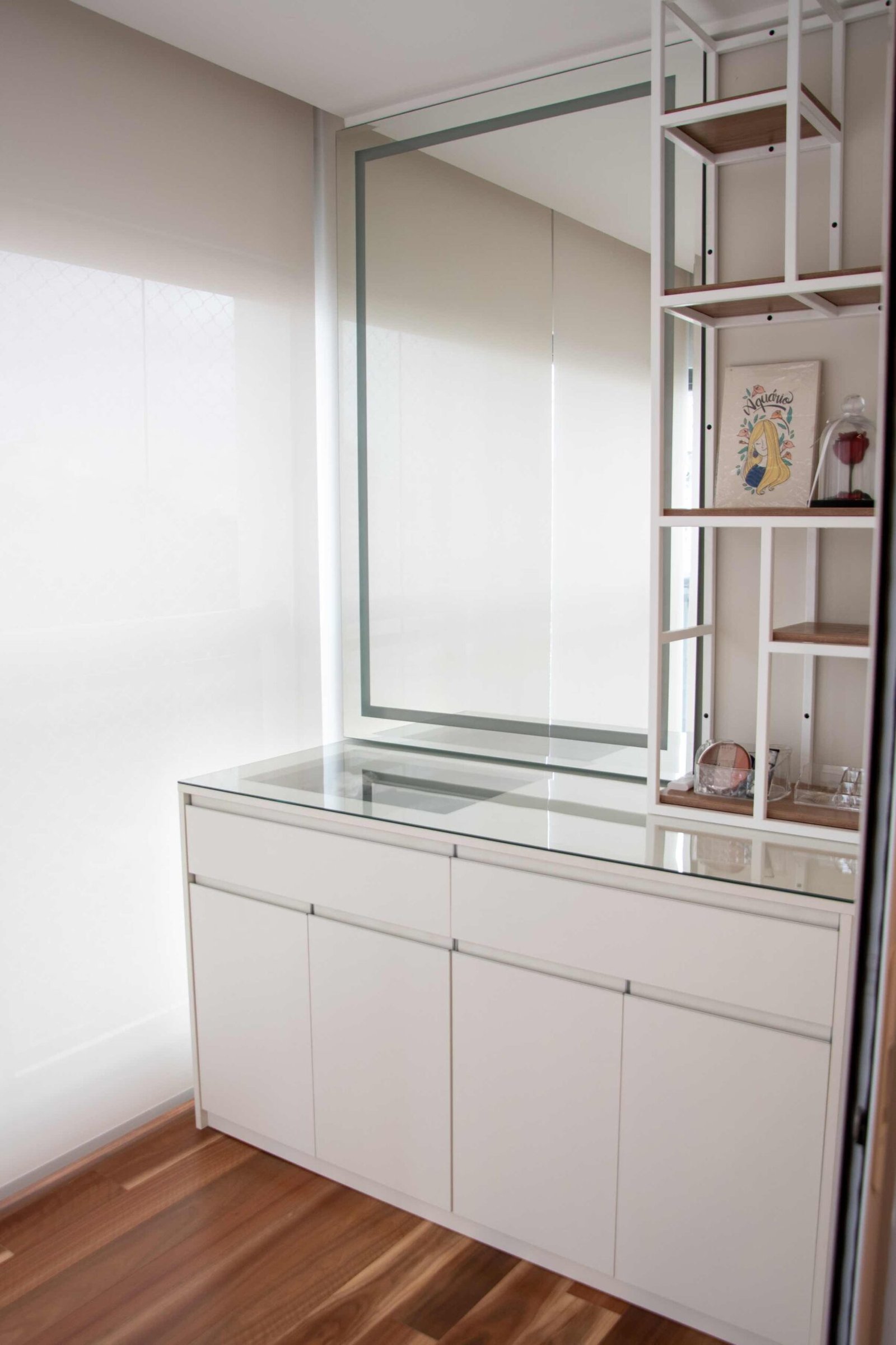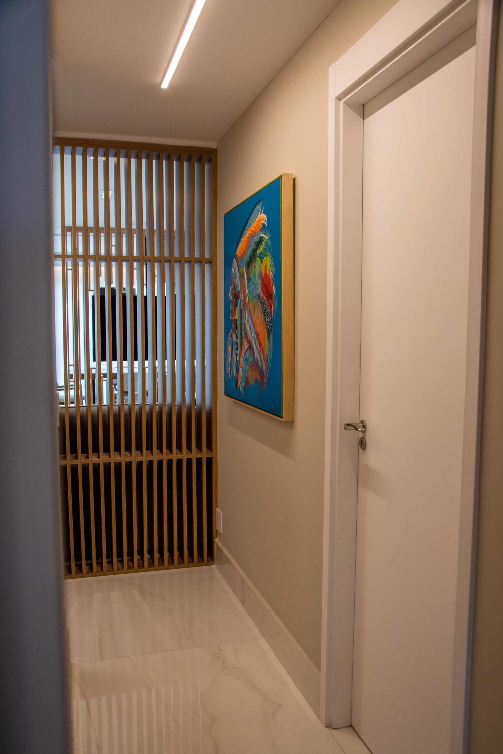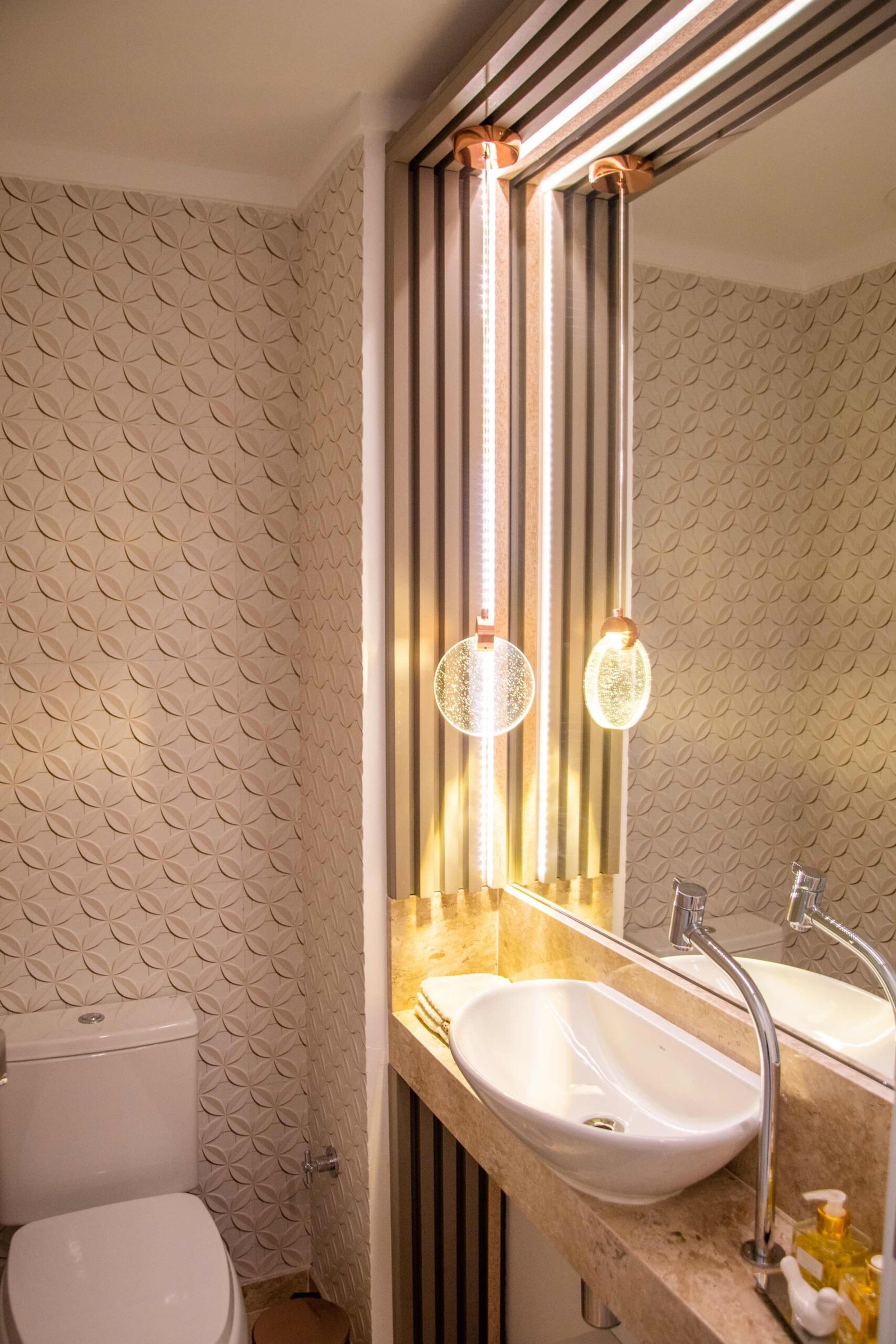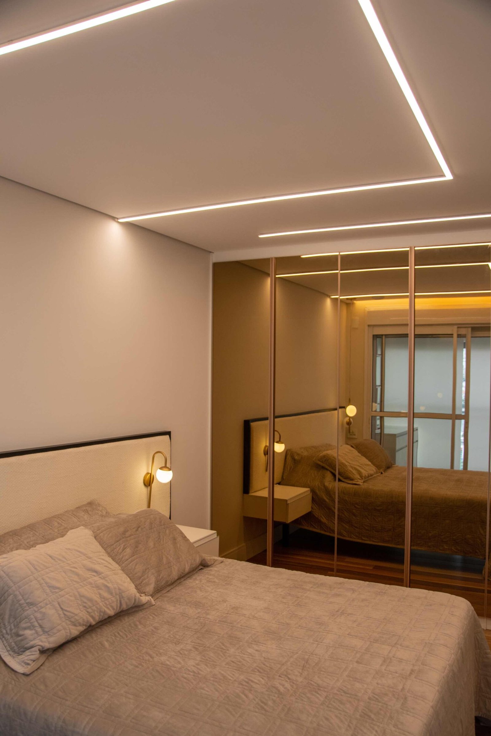 A iluminação, tanto natural quanto artificial, desempenha um papel essencial ao realçar os detalhes do projeto, valorizando os materiais e criando diferentes atmosferas ao longo do dia. Elementos decorativos pontuais, como texturas, nichos e detalhes verticais, adicionam personalidade ao ambiente sem sobrecarregá-lo, mantendo uma estética clean e sofisticada.